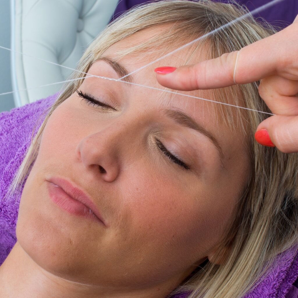 Threading allows for a more defined and precise shape and can create better definition for eyebrows. It is then rolled over areas of unwanted hair with plucking the hair at the follicle level where single hairs are pulled if any left from threading or waxing.